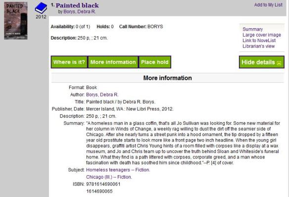 Today I found out a friend requested my novel Painted Black from their local library. Due to his initiative, his library system purchased a copy and told him it was ready to borrow. I know my book doesn’t approach the appeal and mystique of A Wrinkle In Time. But there is an intense satisfaction in knowing that somewhere within the walls of the Kitsap Public Library, someone could be sitting in a corner flipping through the pages of a novel that I’ve written.