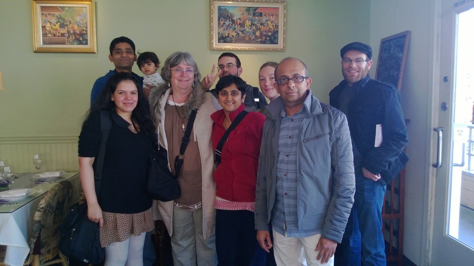 Here is a photo we took after a meeting we had recently.  All the key players are there save an important guy named Robert Lint, plus we had a writer-in-training in attendance, Adaa, the beautiful daughter of Rahul Pratap and his wife Chandana.