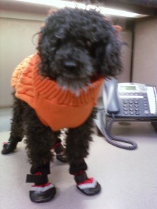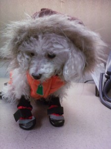 I also bought new dog coats, because the ones I have just didn’t seem warm enough. Dixie’s is particularly adorable so I had to take pictures. Here’s a couple, there’s a couple more in the Pictures page.