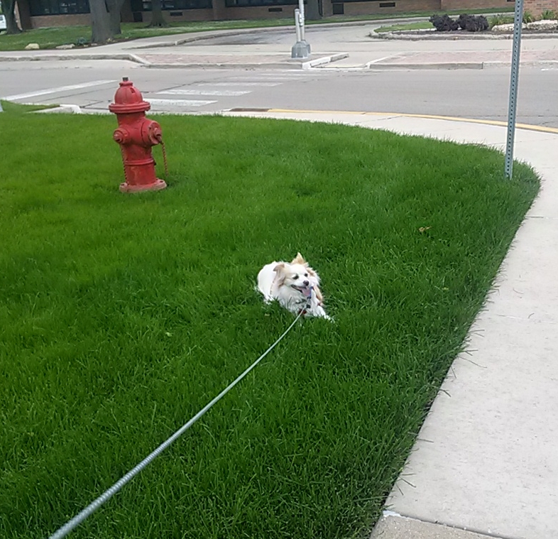 The best walks, though, are days when we have the time and the weather is gorgeous and we can split the difference between the other two types of walks. Sophie has loads of choice as to which side of the street she walks on, how fast she wants to walk, what direction she wants to take. I even occasionally let her lay in one of her favorite yards for several minutes as she looks around and observes everything in the surroundings.